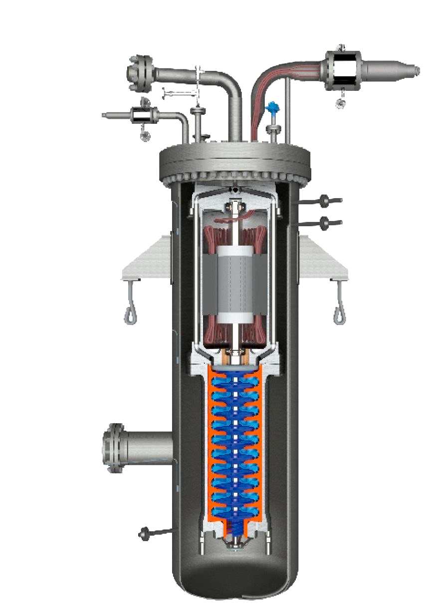 Криогенный насос состоит из корпуса, в котором размещены криоголовка и система экранов и панелей. Криогенные насосы относятся к насосам конденсационного типа - откачка происходит за счет конденсации газов и паров поверхностью, охлажденной до сверхнизких (гелиевых) температур. Система экранов и панелей, охлаждаемых криоголовкой, образует несколько ступеней откачки. Первая ступень (на входе насоса) охлаждается до 60-100К служит для конденсации молекул водяного пара и тяжелых углеводородов. Вторая ступень охлаждается до 10-20К и предназначена для конденсации молекул аргона, азота, кислорода и других газов. Для адсорбции газов, которые не переходят в твердую фазу используется активированный уголь. Еще ниже располагается третья ступень откачки, содержащая гранулы углерода, адсорбирующие оставшиеся молекулы газа.