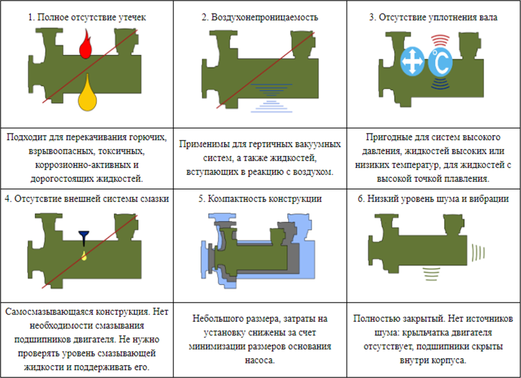 В эксплуатации наши насосы позволяют экономить значительные денежные средства за счет высокой надежности насосов и соответственно длительного срока эксплуатации и межремонтного пробега, а также за счет уменьшения эксплуатационных текущих расходов связанных обычно с заменой сальниковых узлов и подшипников.